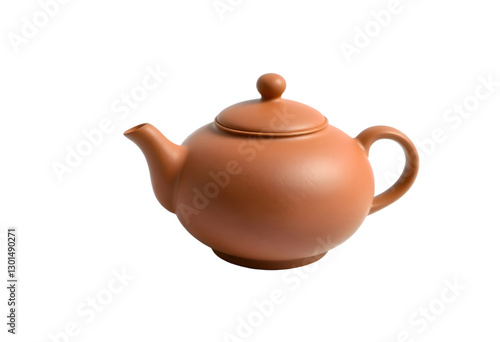 Brown ceramic teapot isolated on transparent background