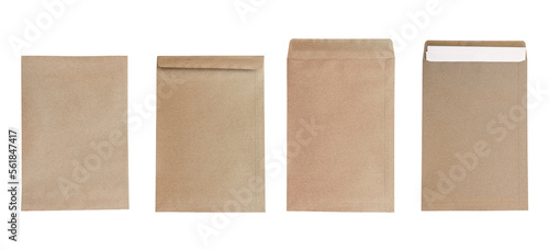Brown envelope front and back with white paper inside isolated on transparent background PNG file.
