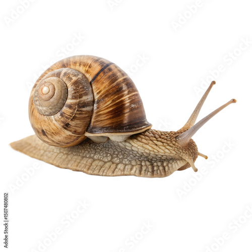 Brown garden snail isolated on transparent background