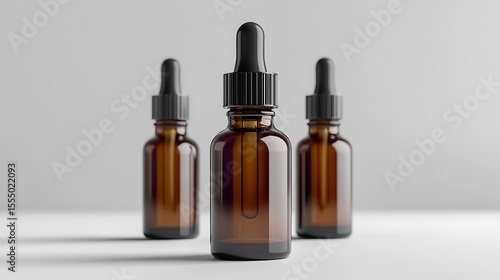 Brown glass dropper bottle on white background. Mock up, 3D Rendering