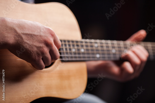 Brown guitar in hands in the guy playing it