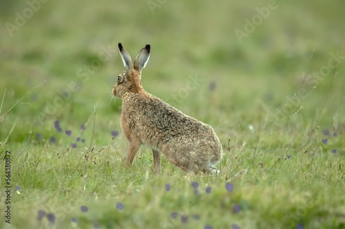 Brown hare, Lepus europaeus, on the grass in the uk in the summer