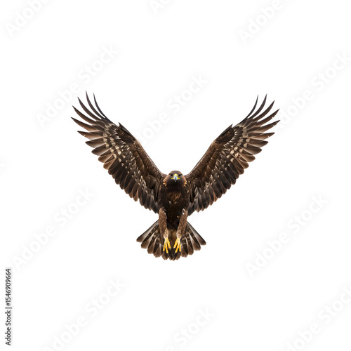 Brown Hawk with Wings Spread Mid-Flight Isolated