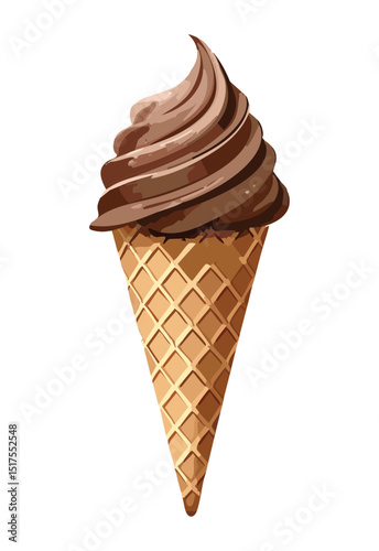 Brown Ice Cream Swirl Cone - Vector Illustration