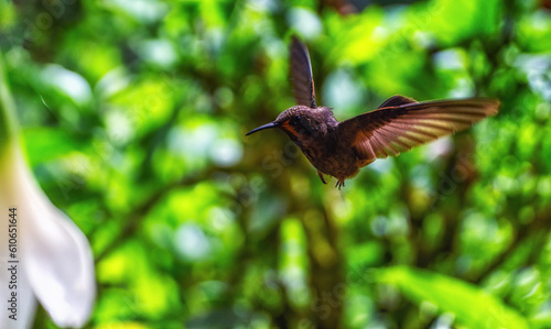 Brown Inca, Coeligena wilsoni, flying. Ecuador