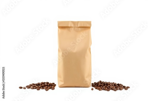 Brown kraft paper bag, isolated on white, clipping path included Ideal for coffee packaging mockups, simple, product packaging