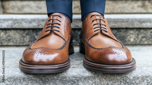 Brown Leather Oxford Shoes: A classic pair of brown leather oxford shoes, featuring a wingtip design, laces, and a polished finish, capturing the essence of timeless style and elegance.