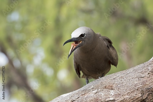 Brown Noddy or sea-swallow (Anous stolidus) with open beak and tongue, Bird Island, Seychelles, Indian Ocean, Africa