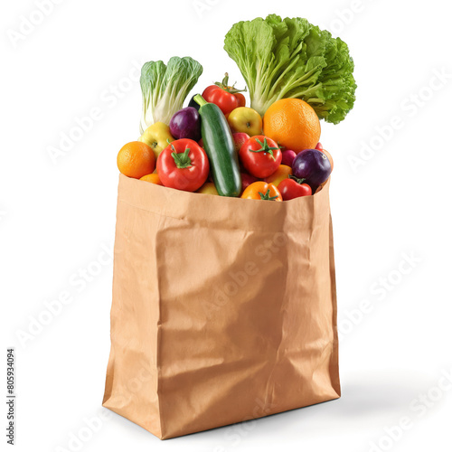 Brown paper bag overflowing with vibrant fresh fruits and vegetables with colorful produce bursting out