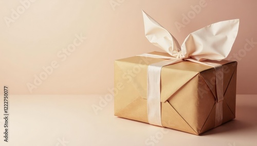 Brown paper packaging with horizontal folds and tissue paper, wrapping, parcel