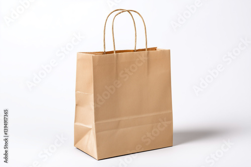 Brown paper shopping bag displayed against a white background with no items visible inside