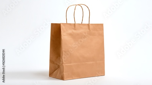 Brown paper shopping bag isolated on white background
