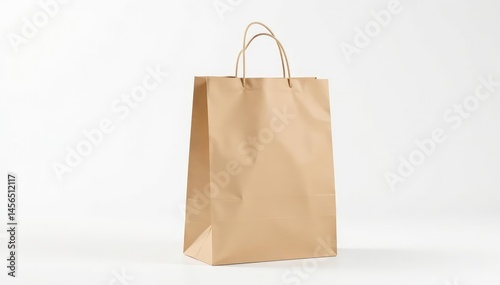 Brown paper shopping bag, isolated, white backdrop, carry, image, grocery bag