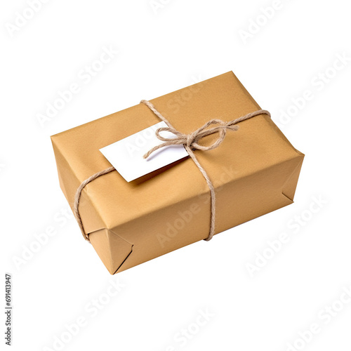 Brown paper wrapped package gift isolated on transparent or white background, png