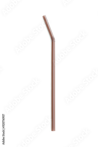 Brown plastic straw isolated on white background, Plastic drinking straw