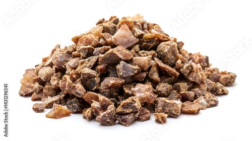 Brown Rock Salt Crystals Piled on a White Background for Cooking