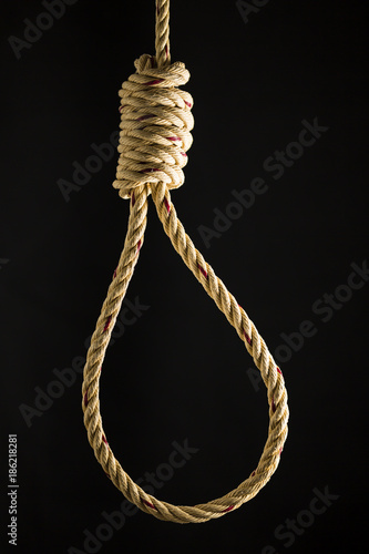 Brown rope noose dark and light on black background, concept of hanging suicide