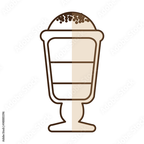 brown silhouette shading of glass cup of cappuccino with foam vector illustration