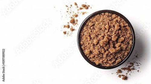 Brown Sugar in Bowl Isolated on White Surface for Culinary Use