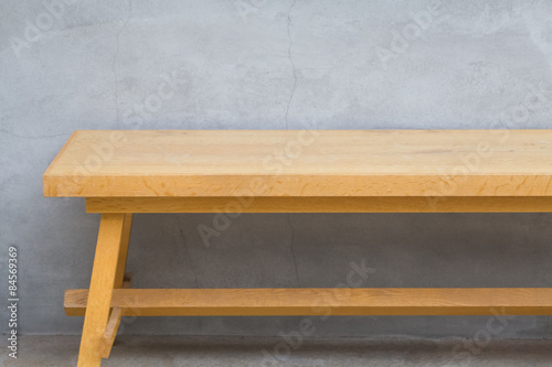 Brown wood bench and concrete wall background