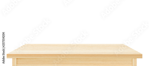 Brown wooden table top isolated on white background. Used for display or montage your products.