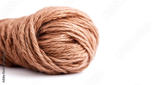 Brown wool skein neatly rolled on a clean white background showcasing texture and softness ideal for crafting and textile design projects.