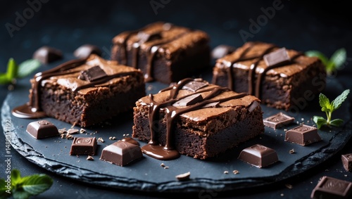 brownies made with chestnut and topped with chocolate icing on a dark background