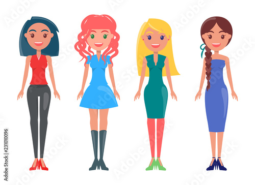 Brunette Woman in Black Skinny Pants, Redhead Girl