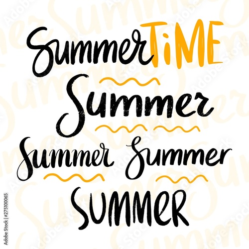 Brush lettering vector illustration of handwritten words Summer Time on white background with yellow text