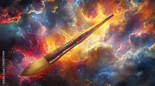 Brush of Infinity: Surreal Antique Paintbrush in Celestial Starry Void