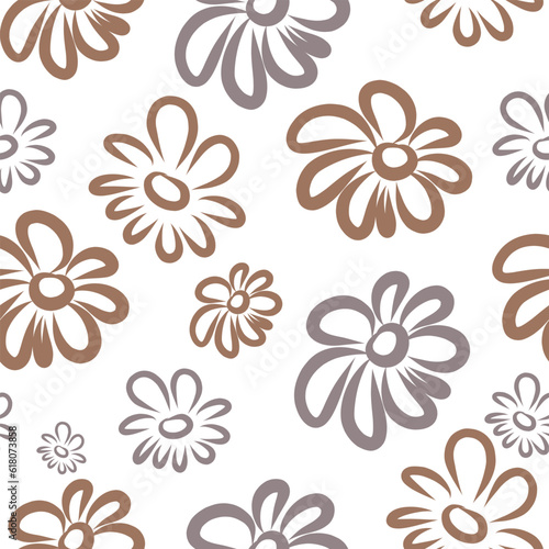 Brush strokes, flowers, spots create seamless patterns for fashionable bright textiles, graphics, backgrounds and crafts.