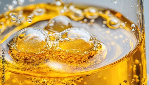Bubbles in amber liquid. Close-up macro shot