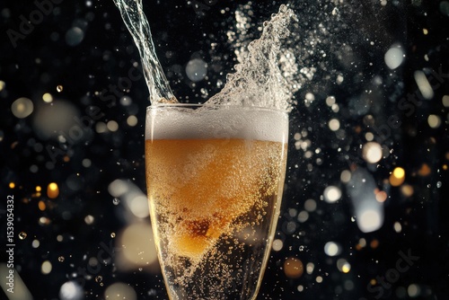 Bubbly alcoholic drink poured into glass in upscale lounge with vibrant atmosphere, Fizzing Alcoholic Drink Is Poured In VIP Section