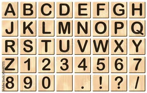 Buchstaben-Spielsteine (Illustration mit Lichteffekten)