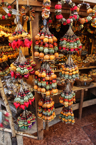 Budapest, Hungary. Christmas market in Budapest with a dried fruit stand.