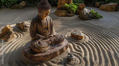 Buddha statue in a zen sand garden.
