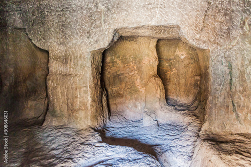 Buddhist monastery carved into a cliff in Ajanta, Maharasthra state, India