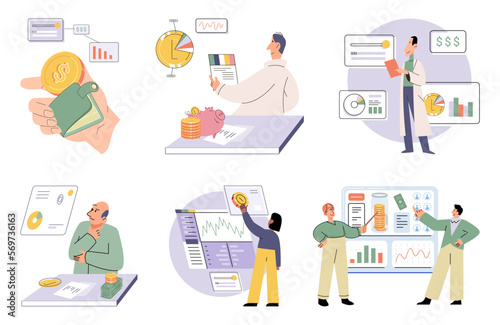 Budget plan concept. Evaluates income and expenses, analyzes investments and savings. Financial literacy and economics, accounting. Planning and distribution of money. Income and expenses report