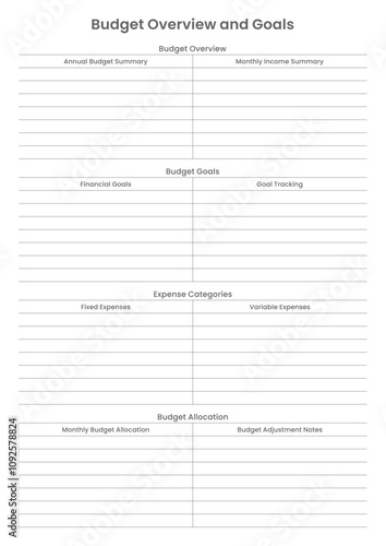 Budget Planner Pages and Planner Sheets Design Template for daily, weekly, monthly and annually Budget organizing routines and personal goals