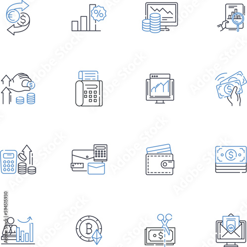 Budgeting line icons collection. Frugal, Planning, Saving, Expenses, Thrifty, Cost-cutting, Income vector and linear illustration. Allocation,Forecasting,Prioritization outline signs set