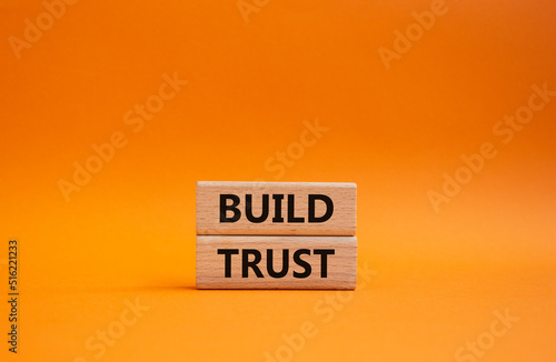 Build trust symbol. Wooden blocks with words Build trust. Beautiful orange background. Business and Build trust concept. Copy space.