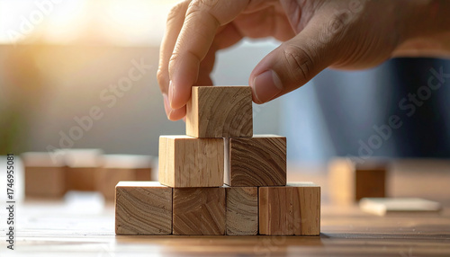 Build your future with wooden blocks, symbolizing growth, strategy, and a solid foundation for success in life or business, perfect for educational concepts