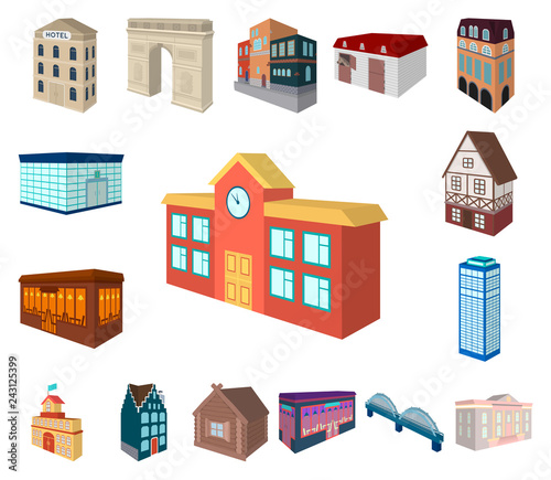 Building and architecture cartoon icons in set collection for design.The building and dwelling vector isometric symbol stock web illustration.