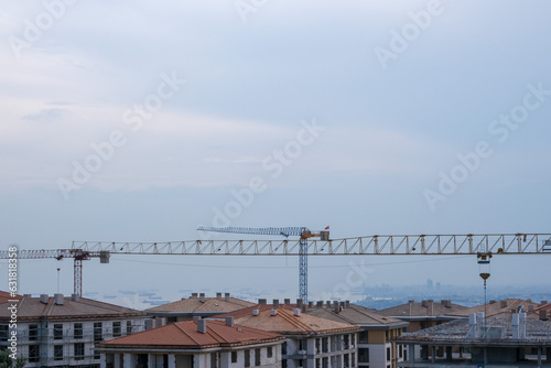 Building construction site with cranes in İstanbul