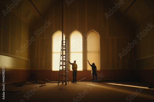 Building for Jesus. Two workers working on the interior