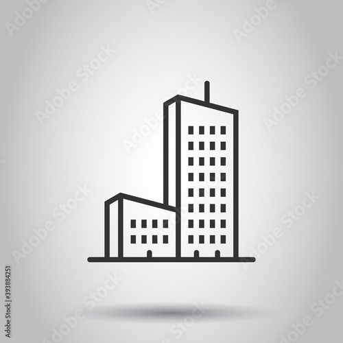 Building icon in flat style. Town skyscraper apartment vector illustration on white isolated background. City tower business concept.