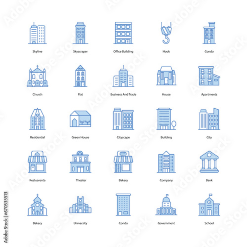 Building icons set, city building, Bank, Hotel, Courthouse. Buildings line icons. City, Real estate, Architecture buildings icons. Hospital, town house, museum. Urban architecture, city skyscraper, do
