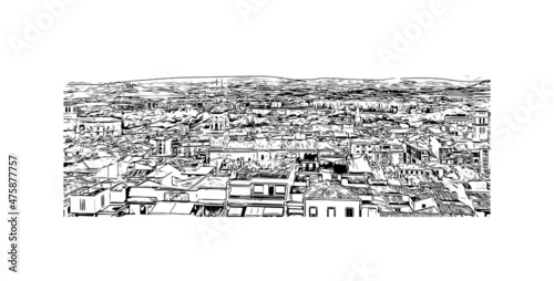 Building view with landmark Logrono is a city in northern Spain. Hand drawn sketch illustration in vector.