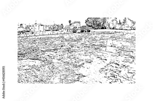 Building view with landmark of Larnaca is the city in Cyprus. Hand drawn sketch illustration in vector.