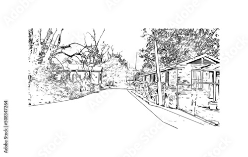 Building view with landmark of Montgomery is the city in Alabama. Hand drawn sketch illustration in vector.